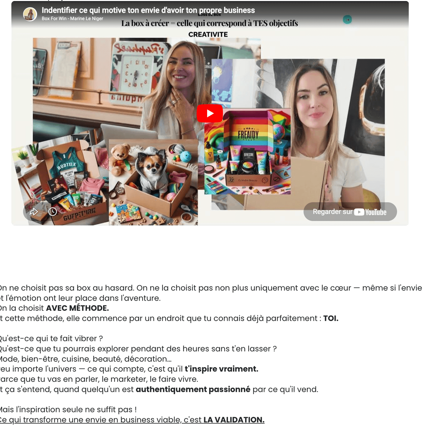 Tu repars avec le design de ta marque téléchargeable — et un prompt IA créé pour toi, prêt à générer des visuels efficaces pour vendre ta box.